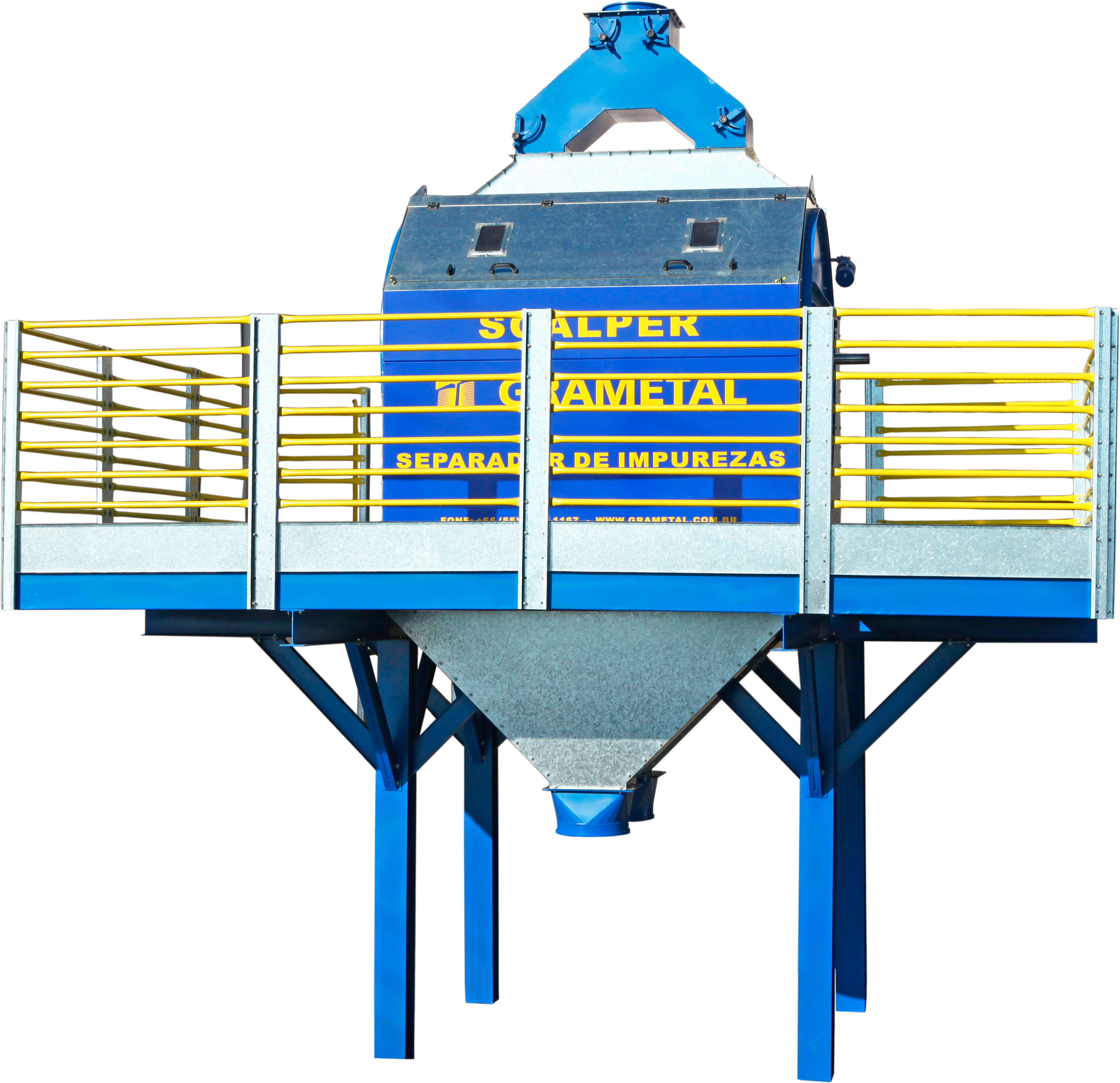 Com design inovador, projeto compacto e funcional, nosso SCALPER – Separador de impurezas faz a separação de resíduos volumosos (Vagem e Sabugo) com o proposito de melhorar o processo de limpeza em maquinas convencionais bem como diminuir o volume de resíduos no processo de secagem e armazenagem. Pode ser adaptado na maioria das maquinas de pre limpeza do mercado. Acompanha quadro de comando com inversor de frequência para regulagem de fluxo de grãos. Atende capacidades de 80 t/h a 240 t/h, com opcional de aspiração integrada, para re?rada de impurezas leves. Estrutura em vigas ”H” e corpo em chapas zincadas e parafusadas.