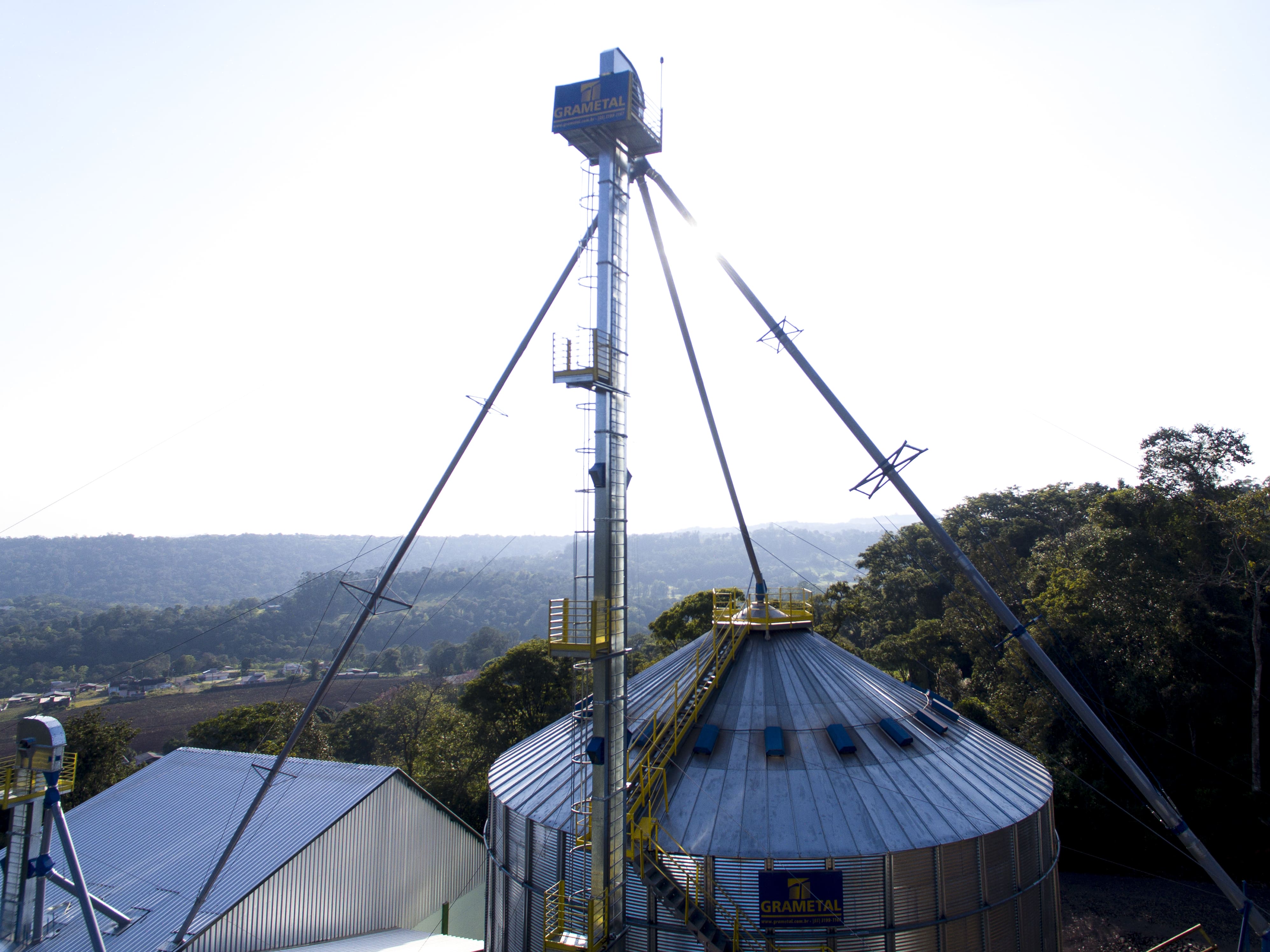 Possui dispositivo para retirada do tambor inferior sem necessidade de desmontagem do pé. Possui passarelas de descanso e de manutenção com sistema trava quedas de acordo com a NR 18 e NBR 6110:2014.